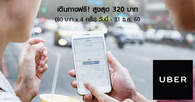 เดินทางฟรีสูงสุด 320 บาท (80 บาท จำนวน 4 ครั้ง) สำหรับผู้ใช้บริการ Uber ครั้งแรก และชำระค่าบริการผ่าน