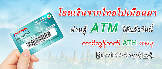 - พิเศษต่อที่ 2 สำหรับลูกค้าที่มีบัญชีปลายทางกับธนาคาร KBZ (Kanbawza Bank) เมื่อสมัครใช้บริการที่สาขาที่ร่วมรายการรับ Myanmar Remit Card ได้ 25 สาขา (ดูรายละเอียดสาขาที่ร่วมรายการ)