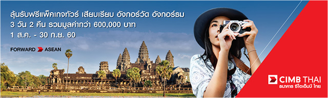 ลุ้นรับฟรี แพ็คเกจทัวร์เสียมเรียบ อังกอร์วัด อังกอร์ธม เมื่อทำธุรกรรมตามที่กำหนดกับ ธ.ซีไอเอ็มบี ไทย