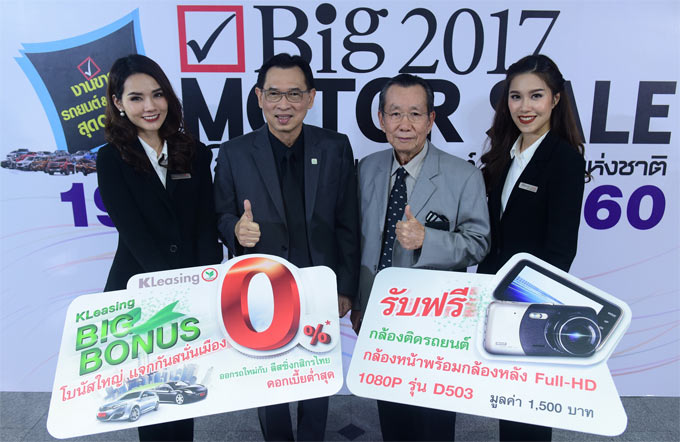 นายศาศวัต วีระปรีย ประธานกรรมการบริหาร บริษัท ลีสซิ่งกสิกรไทย จำกัด และ นายจรวย ขันมณี ประธานจัดงาน BIG Motor Sale ร่วมเปิดตัวแคมเปญ "KLeasing BIG Bonus โบนัสใหญ่ แจกกันสนั่นเมือง" ให้สิทธิพิเศษแก่ผู้สมัครสินเชื่อเช่าซื้อรถใหม่กับลีสซิ่งกสิกรไทยที่บูธลีสซิ่งกสิกรไทยในงาน BIG Motor Sale 2017 ระหว่างวันที่ 19-31 สิงหาคม 2560 ณ ไบเทค บางนา หรือที่โชว์รูมผู้แทนจำหน่ายรถทั่วประเทศ