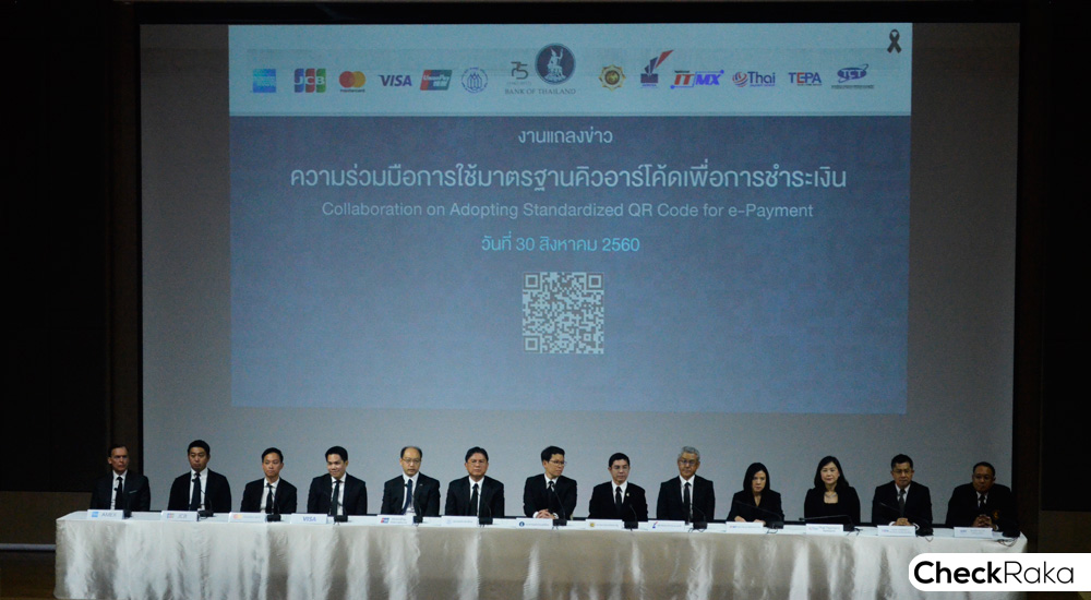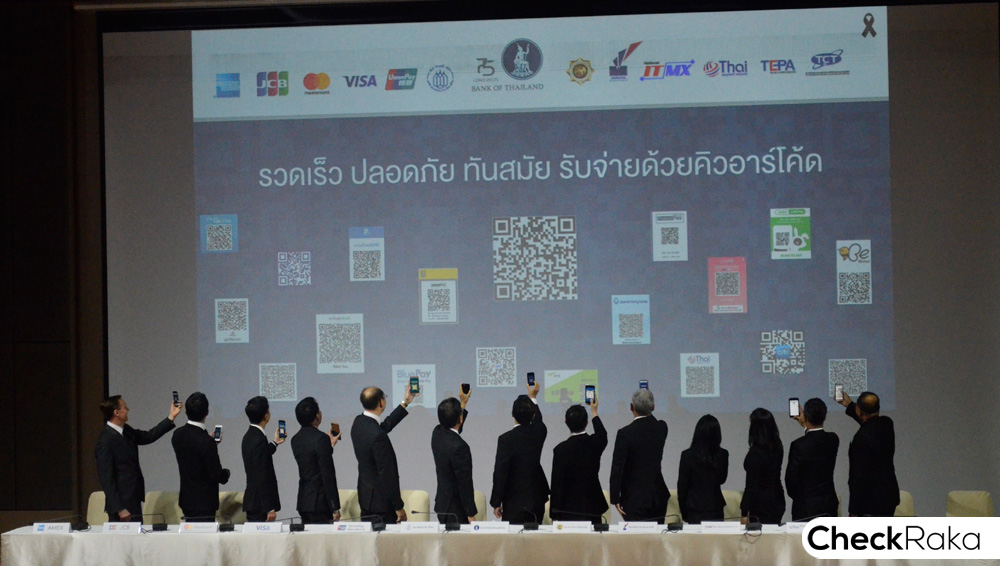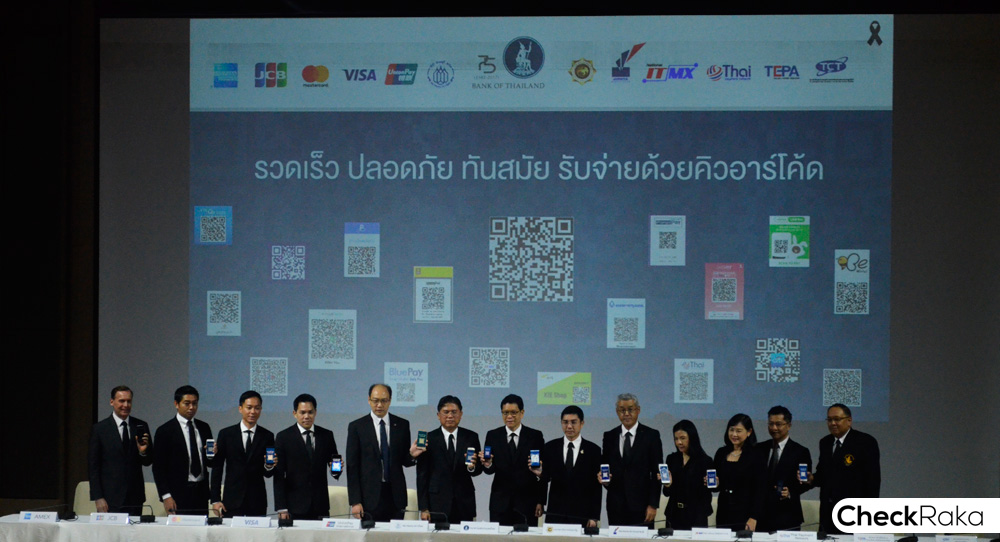 ธนาคารแห่งประเทศไทย (ธปท.) ได้มีการร่วมมือกับเครือข่ายบัตรต่างๆ ซึ่งได้แก่ American Express, JCB International (Thailand), MasterCard, UnionPay International และ VISA พร้อมทั้งผู้ให้บริการทางการเงินในไทย ประกอบด้วย สมาคมธนาคารไทย สภาสถาบันการเงินของรัฐ สมาคมธนาคารนานาชาติ สมาคมการค้าผู้ให้บริการชำระเงินทางอิเล็กทรอนิกส์ไทย สมาคมโทรคมนาคมแห่งประเทศไทยในพระบรมราชูปถัมภ์ บริษัท National ITMX และบริษัท Thai Payment Network จำกัด แถลงความร่วมมือการใช้มาตรฐาน QR Code เพื่อใช้ในการชำระเงินค่าสินค้า/ บริการต่างๆ และได้มีการจัดบูธสาธิตการให้บริการชำระเงินดังกล่าวของสมาคมธนาคารไทย ได้แก่ ธนาคารกรุงศรีอยุธยา ธนาคารกรุงเทพ ธนาคารกสิกรไทย ธนาคารออมสิน ธนาคารซิตี้แบงก์ ธนาคารทหารไทย ธนาคารไทยพาณิชย์ ธนาคารกรุงไทย บริษัท แอร์เพย์ บริษัท บลูเพย์ และบริษัท แรบบิท-ไลน์ เพย์