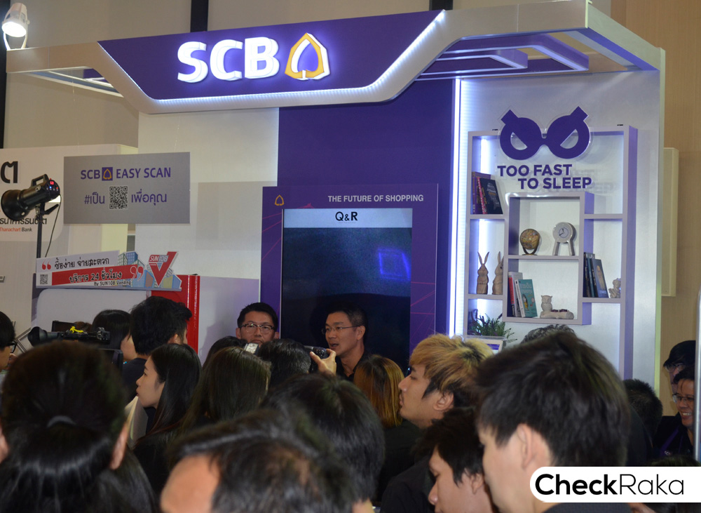 บูธสาธิตของธนาคารไทยพาณิชย์ ที่มีผู้คนให้ความสนใจค่อนข้างมาก