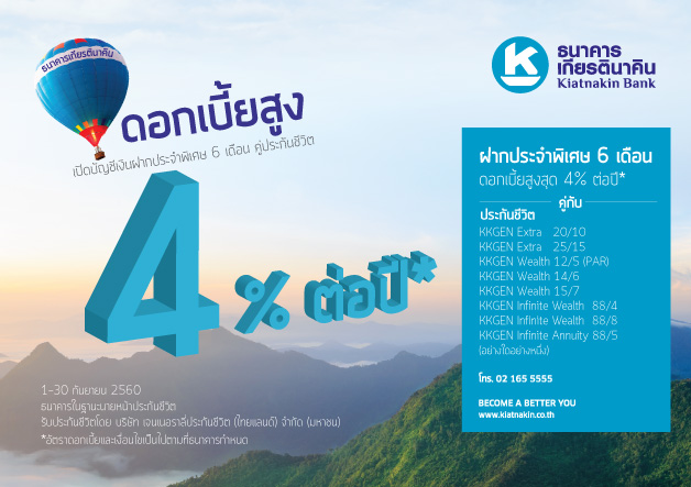 เงินฝากประจำพิเศษดอกเบี้ยสูงคู่กับประกันชีวิต จาก ธ.เกียรตินาคิน รับดอกเบี้ยสูงสุดถึง 4.00% ต่อปี