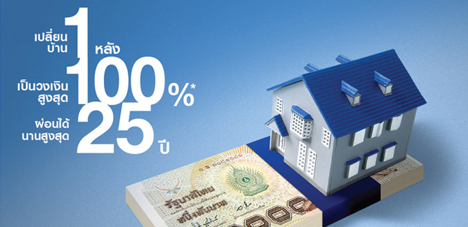 Money Mortgage-Term Loan เปลี่ยนบ้าน 1 หลังเป็นวงเงินสูงสุด 100% ผ่อนได้นานสูงสุด 25 ปี