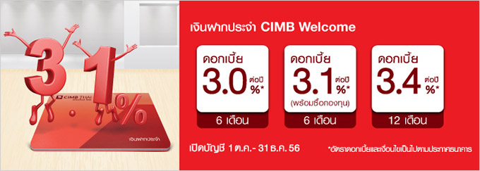 บัญชีเงินฝากประจำ CIMB Welcome ดอกเบี้ยสูง