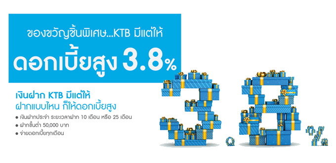 เงินฝาก KTB มีแต่ให้ ฝากแบบไหน ก็ให้ดอกเบี้ยสูง - เงินฝากประจำ ระยะเวลาฝาก 10 เดือน หรือ 25 เดือน