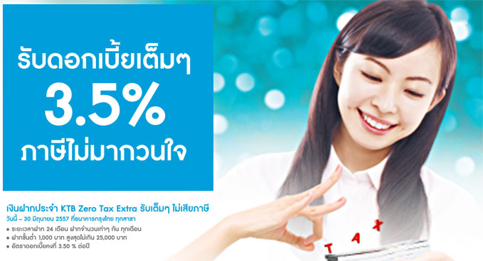เงินฝากประจำ KTB Zero Tax Extra รับเต็มๆ ไม่เสียภาษี