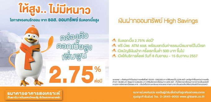 บัญชีเงินฝากออมทรัพย์ High Savings - ธนาคารอาคารสงเคราะห์