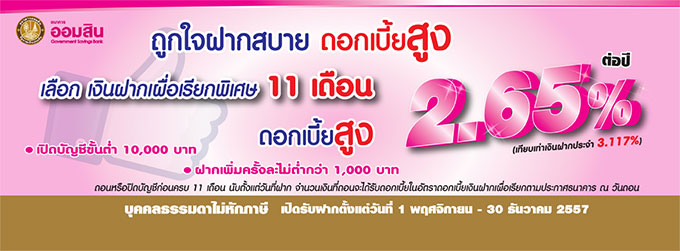 ระยะเวลาเปิดรับฝาก: 1 พ.ย.- 30 ธ.ค. 2557