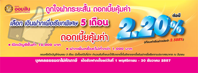 ระยะเวลาเปิดรับฝาก: 1 พ.ย.- 30 ธ.ค. 2557