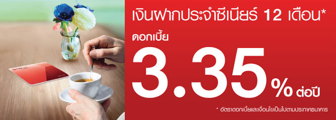 เงินฝากประจำซีเนียร์ 12 เดือน ดอกเบี้ย 3.35% ต่อปี ไม่เสียภาษี