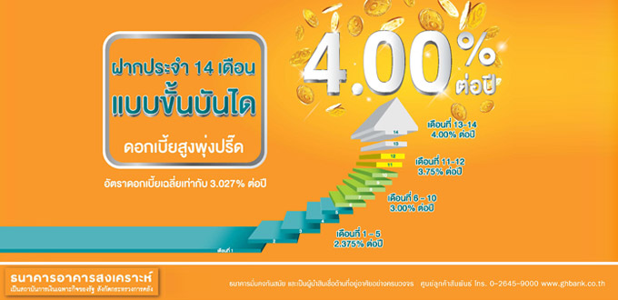 บัญชีเงินฝากประจำ 14 เดือน แบบขั้นบันได - ธนาคารอาคารสงเคราะห์
