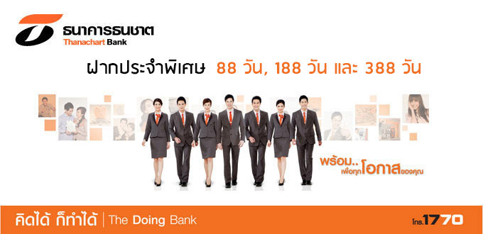 บัญชีเงินฝากประจำพิเศษ ระยะเวลา 88 วัน, 188 วัน และ 388 วัน จากธนาคารธนชาต เป็นบัญชีรับฝากลูกค้าทุกประเภทยกเว้นสถาบันการเงิน กองทุน บริษัทประกันภัย บริษัทประกันชีวิต ผู้มีถิ่นฐานอยู่นอกประเทศ และบริษัทหลักทรัพย์เพื่อผลประโยชน์ของลูกค้า ให้ดอกเบี้ยสูง ตามระยะเวลาที่เลือกฝาก และเปิดบัญชีขั้นต่ำเพียง 10,000 บาท