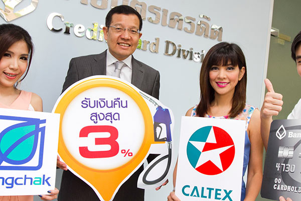 - รับเครดิตเงินคืน 10% เมื่อเติมน้ำมันที่ปั๊มบางจาก และคาลเท็กซ์ที่ร่วมรายการ (Gasoline Cash Rebate)