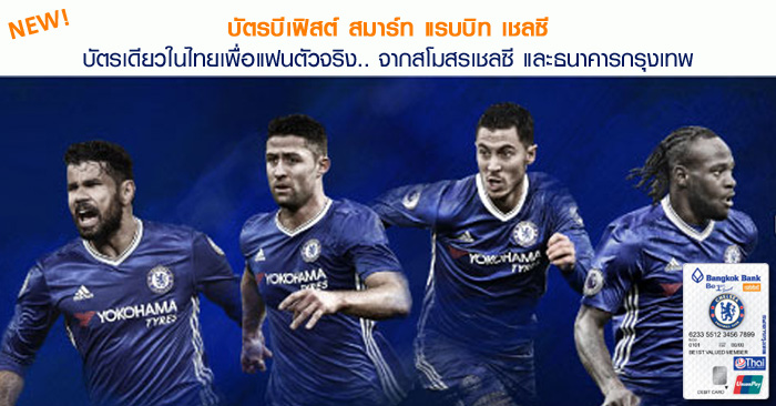 บัตรบีเฟิสต์ สมาร์ท แรบบิท เชลซี.. บัตรแห่งสปิริตสีน้ำเงิน ลาย Limited Edition ที่มาพร้อมด้วยสิทธิประโยชน์มากมายจากสโมสรฟุตบอลเชลซี ธนาคารกรุงเทพ แรบบิท รวมถึง Thai Payment Network และ UnionPay ช้อปปิ้ง กดเงิน เดินทาง ง่ายๆ ในบัตรเดียว สมัครวันนี้! รับของสมนาคุณสุดพิเศษ