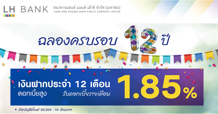 บัญชีเงินฝากประจำพิเศษ 12 เดือน ฉลองครบรอบ 12 ปี - ธ.แลนด์ แอนด์ เฮ้าส์