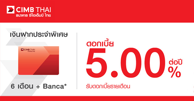 บัญชีเงินฝากประจำพิเศษ 6 เดือน + BANCA* - ธ.ซีไอเอ็มบี ไทย