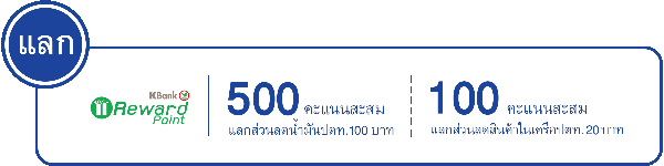 - 500 คะแนนสะสม KBank Reward Point แลกส่วนลดน้ำมันปตท. 100 บาท