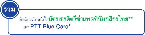 - สิทธิประโยชน์ทั้ง บัตรเครดิตวีซ่าแพลทินัมกสิกรไทย และ PTT Blue Card