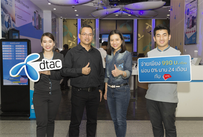 ดีแทค ร่วมกับ เคทีซี จัดโปรโมชั่นพิเศษสุด! ให้ลูกค้าได้เป็นเจ้าของ iPhone ได้ง่ายมากขึ้นอีก ด้วยการจัดสินเชื่อพร้อมใช้ ดอกเบี้ย 0% ตลอด 24 เดือน ผ่านบัตร "เคทีซี พราว" (KTC PROUD) เพียงลูกค้าชำระเหมาจ่าย เริ่มต้นเพียงเดือนละ 990 บาท ได้ iPhone 6 32GB พร้อมใช้เน็ตไม่อั้น โทรไม่อั้น นาน 24 เดือน