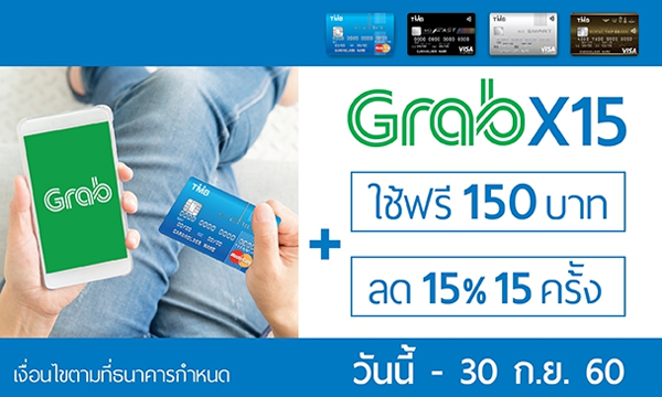รายละเอียดโปรโมชั่น : ลูกค้าบัตรเครดิต TMB ใช้ Grab ทุกบริการ ลด 15% จำนวน 15 ครั้ง ใส่รหัส TMBX15