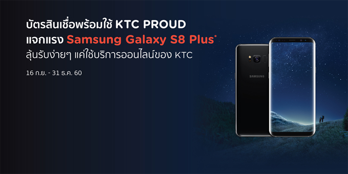 บัตรสินเชื่อพร้อมใช้ KTC PROUD แจกแรง Samsung Galaxy S8 Plus แค่ใช้บริการออนไลน์ของ KTC