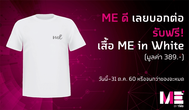 โปรดีจาก ME by TMB ลูกค้าปัจจุบัน และลูกค้าใหม่ รับฟรี เสื้อยืด ME in White, ME in Black