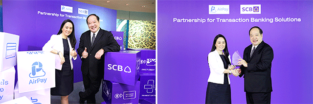 ธนาคารไทยพาณิชย์ เดินหน้ารุกบริการระบบการจัดการด้านการเงินเพื่อภาคธุรกิจอย่างต่อเนื่อง ขยายเครือข่ายพันธมิตรสู่กลุ่มธุรกิจเทคโนโลยีการรับเงินและการชำระเงิน จับมือ บริษัท แอร์เพย์ (ประเทศไทย) จำกัด ผู้ให้บริการชำระเงินออนไลน์ที่เติบโตอย่างก้าวกระโดด มอบโซลูชั่นการจัดการด้านการเงินครบวงจร เสริมศักยภาพการให้บริการเพื่อผลักดันแอร์เพย์เดินสู่เป้าหมาย One-Stop-Service ที่สามารถตอบโจทย์ลูกค้า AirPay Application และเครือข่าย AirPay Counter ที่มีการทำธุรกรรมอย่างหลากหลาย อาทิ เติมเงินเกมออนไลน์ ช้อปปิ้งออนไลน์ เติมเงินโทรศัพท์มือถือ จ่ายบิล ตลอดจนการซื้อตั๋วภาพยนตร์ รวมถึงการให้บริการรับชำระเงินด้วยเครื่องรูดบัตรมือถือ (mPOS) เพื่อเพิ่มช่องทางการชำระเงินให้กับธุรกิจในเครือ AirPay อย่างครบวงจร ตอบสนองไลฟ์สไตล์ของลูกค้าในยุคดิจิทัลได้อย่างสมบูรณ์แบบ ธนาคารไทยพาณิชย์ยังคงมุ่งมั่นพัฒนาผลิตภัณฑ์และบริการทางการเงิน สนับสนุนลูกค้าธุรกิจด้วยโซลูชั่นที่ทันสมัย ตอกย้ำความเป็นผู้นำด้านบริการธุรกรรมทางการเงินที่ดีที่สุด