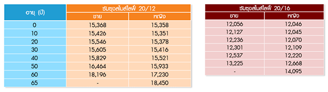- ซัมซุงสไมล์ไลฟ์ 20/16 (2) : เพศชาย 1 วัน - 55 ปี / เพศหญิง 1 วัน - 60 ปี