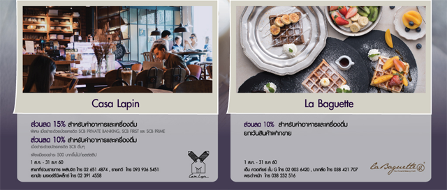 รับส่วนลดสูงสุด 15% สำหรับค่าอาหารและเครื่องดื่ม ที่ร้าน Casa Lapin