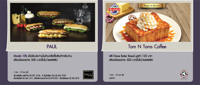 รับส่วนลด 10% เมื่อมียอดใช้จ่าย 500 บาทขึ้นไป ที่ร้าน PAUL