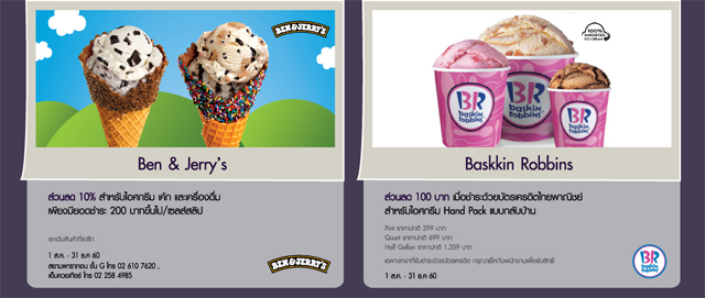 รับส่วนลด 10% สำหรับไอศกรีม เค้ก และเครื่องดื่ม เมื่อชำระ 200 บาทขึ้นไป ที่ร้าน Ben & Jerry's