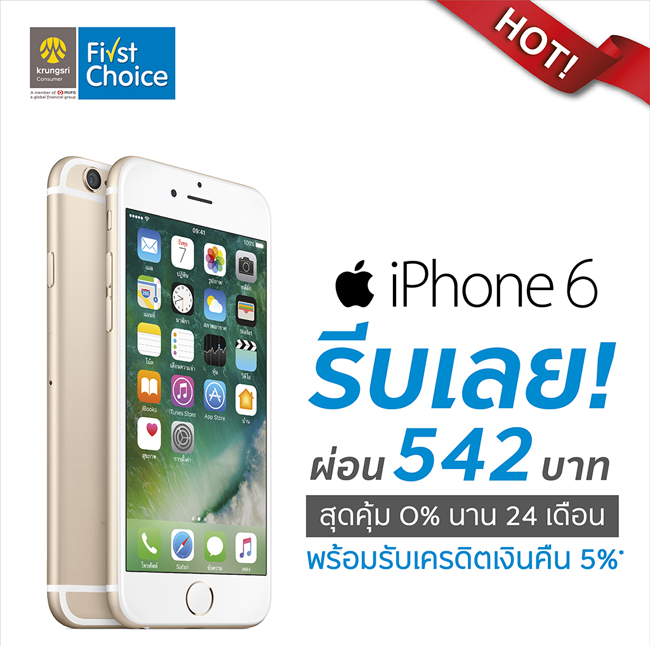 iPhone 6 ซูเปอร์ดีล 0% เริ่มต้นแค่ 542 บาท