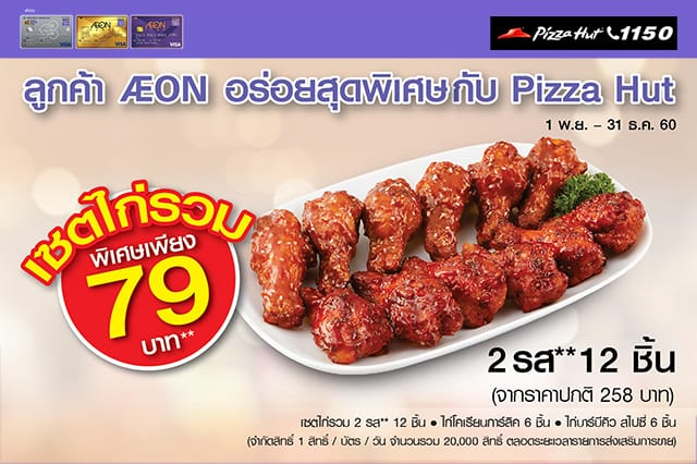 อร่อยสุดพิเศษกับ Pizza Hut เซตไก่รวม 2 รส ราคาเพียง 79 บาท จากปกติ 258 บาท จากบัตรเครดิต AEON