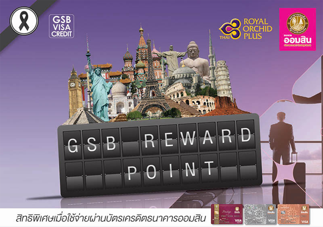 สิทธิพิเศษสำหรับลูกค้าบัตรเครดิตธนาคารออมสิน ให้คุณแลกรับไมล์สะสม รอยัล ออร์คิด พลัส ได้ง่ายขึ้น เพื่อแลกรางวัลบัตรโดยสารการบินไทย สู่จุดหมายปลายทางทั่วโลก โดยทุกการใช้จ่าย