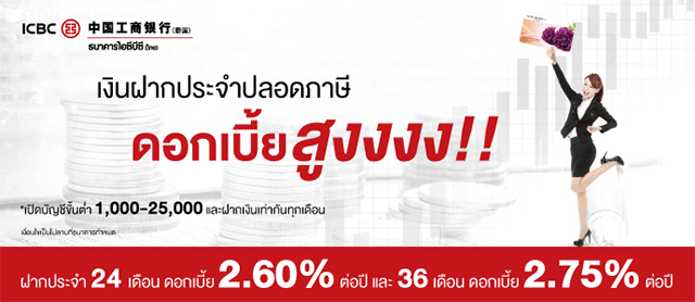 ออมเงินสบายใจ ไม่เสียภาษี รับดอกเบี้ยสูงกับธนาคารไอซีบีซี (ไทย)