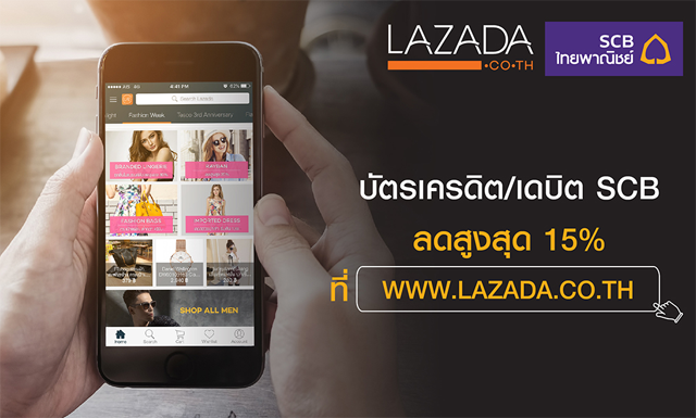 รับส่วนลดสูงสุด 15% เมื่อช้อปออนไลน์ที่ LAZADA.CO.TH ผ่านบัตรเครดิตและบัตรเดบิตไทยพาณิชย์