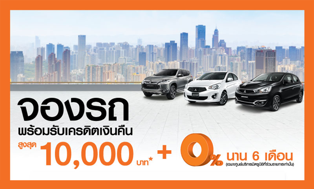 จองรถ รับเงินคืนสูงสุด 10,000 บาท พร้อมผ่อน 0% นาน 6 เดือน ที่ศูนย์ฯ มิตซูบิชิ กับบัตรเครดิตธนชาต