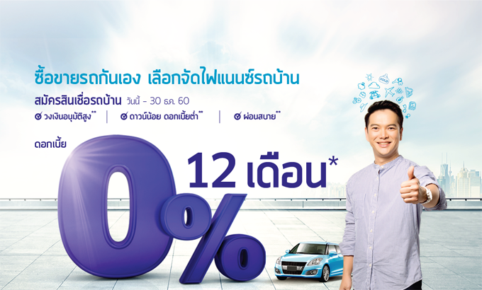 เงื่อนไขแคมเปญ - เฉพาะลูกค้าที่สมัครใช้บริการสินเชื่อรถยนต์มือสอง (รถบ้าน) ตั้งแต่วันนี้ - 30 ธ.ค. 60 เท่านั้น