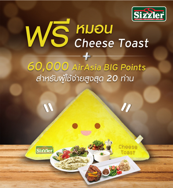 ฟรี! หมอน Cheese Toast + 60,000 AirAsia BIG Points เมื่อใช้จ่ายที่ร้าน Sizzler ผ่านบัตรเครดิตซิตี้