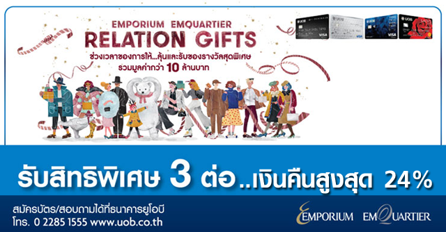 รับเงินคืนสูงสุด 24% เมื่อใช้จ่ายที่ Emporium / Emquartier ช่วง Relation Gifts ผ่านบัตรเครดิต UOB