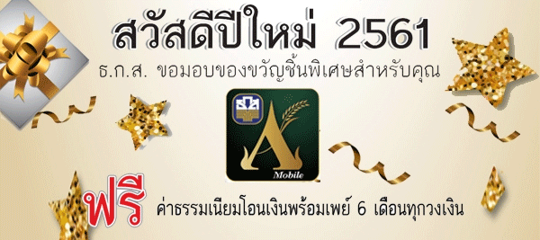 ธ.ก.ส.มอบของขวัญพิเศษด้วยบริการ ธ.ก.ส. A-Mobile ฟรีค่าธรรมเนียมโอนเงินพร้อมเพย์ 6 เดือนทุกวงเงิน