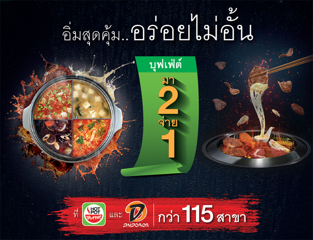 อิ่มสุดคุ้ม.. อร่อยไม่อั้น กับบุฟเฟ่ต์ มา 2 จ่าย 1 ที่ร้าน HOT POT และ DAIDOMON กว่า 115 สาขา เมื่อใช้จ่ายผ่าน