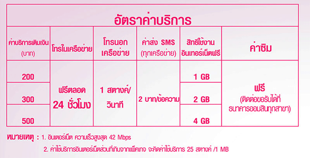 - เติมเงินต่ำกว่า 300 บาท ได้รับสิทธิ์การใช้งานนาน 30 วัน