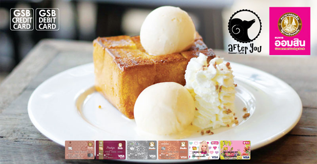 สิทธิพิเศษสำหรับลูกค้าบัตรเครดิต หรือ บัตรเดบิตธนาคารออมสิน รับฟรี! Shibuya Honey Toast 1 รายการ มูลค่า 195 บาท ที่ After You ทุกสาขาที่ร่วมรายการ เมื่อมียอดใช้จ่ายผ่านบัตรฯ ตั้งแต่ 500 บาทขึ้นไป/ เซลล์สลิป