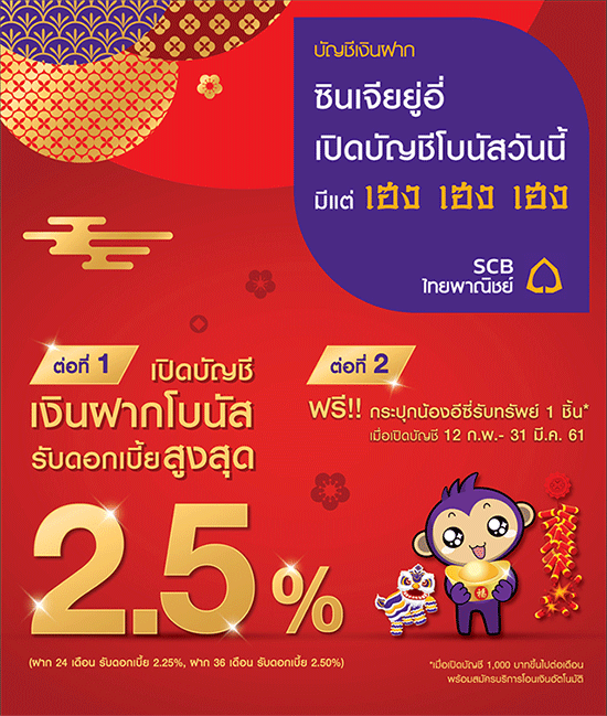 เปิดบัญชีโบนัสกับ ธนาคารไทยพาณิชย์ วันนี้ มีแต่ เฮง เฮง เฮง