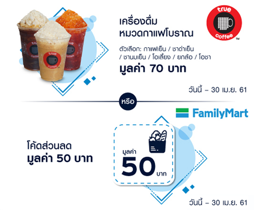 เงื่อนไขรายการส่งเสริมการขาย - สงวนสิทธิ์เฉพาะสมาชิกบัตรฯ ซิตี้ ซิมพลิซิตี้ โดยสมาชิกที่มียอดใช้จ่ายผ่านบัตรฯ ตั้งแต่ 1,000 บาท/ รายการ รับ 1 สิทธิ์ โดยสามารถเลือกรับเครื่องดื่มหมวดกาแฟโบราณ 1 แก้ว มูลค่า 70 บาท ที่ทรูคอฟฟี่ หรือคูปองส่วนลด 50 บาท ที่แฟมิลี่มาร์ท