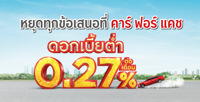 คาร์ ฟอร์ แคช ดอกเบี้ยต่ำ 0.27% คุ้มกว่าเห็นๆ