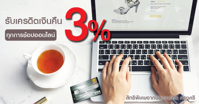 สมัครบัตรเครดิตกรุงศรี วันนี้.. พิเศษ! ทุกการช้อปออนไลน์ รับเครดิตเงินคืนสูงสุด 3% ของยอดใช้จ่าย