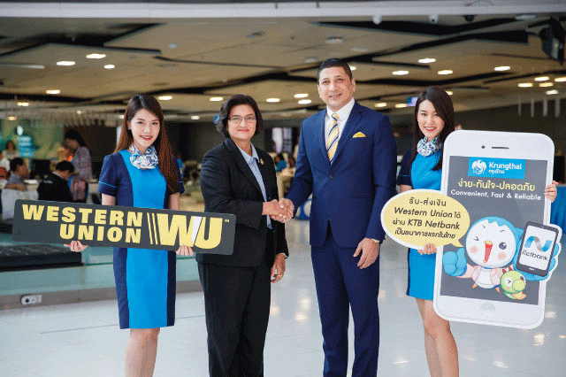 ธนาคารกรุงไทยให้บริการรับ-ส่งเงินด่วนระหว่างประเทศเวสเทิร์น ยูเนี่ยน ผ่านบริการ KTB netbank เป็นธนาคารแรกในประเทศไทย เพิ่มความสะดวก รวดเร็ว รองรับยุคดิจิทัล ตั้งเป้าเติบโตในปีนี้ 5 - 10%